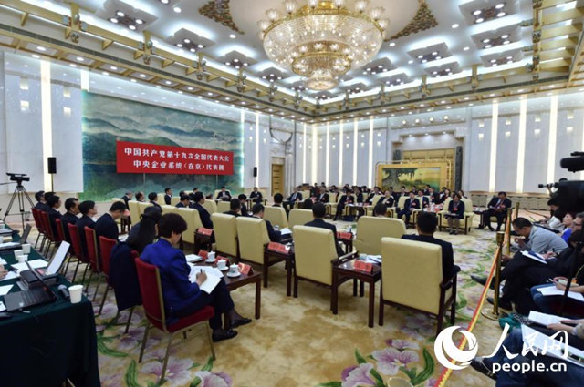 中央企業系統(在京)代表團討論現場(人民網記者 翁奇羽 攝)