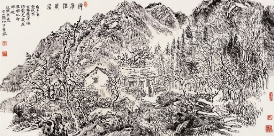 而就在此時,張仃也開始挑戰“一向無人敢于問津”的焦墨山水畫創作。相比于水墨畫,焦墨畫創作材料中水的成分要少,用的是干墨, “難以發揮用水之長” 。但張仃卻用他的焦墨創作留下了一幅幅名作,其中最出名的便是他于1977年創作的《房山十渡焦墨寫生》 ?!八慕鼓剿嬙谥袊鼓嬍飞鲜鞘浊恢傅?。 ”說起張仃的焦墨畫創作,清華大學美術學院教授陳池瑜贊不絕口:“北方的山水,質感很強,比較粗獷,這樣的山水用焦墨畫表現要更好。張仃先生一系列的焦墨山水畫線條粗細得當,畫面豐富,山石的結構、山勢的雄偉,都令人拍案叫絕。 ”
