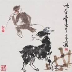 2011年,第四屆全國花鳥畫展在貴州舉辦,由南明區文聯承辦,作為東道主,我受邀參展,本來,我從不畫花鳥,但作為任務,只得硬著頭皮抵擋一陣。反復思考后,我選擇了成語“順手牽羊”為題,畫了一幅立軸。這個題材應該說也是有點來由的,因為我屬羊,老伴屬猴,我們的結識是在“文革”時期,那時我父親蹇先艾受到迫害,被定為“資產階級反動學術權威”被大批大斗,我們一家人都十分落難。我愛人不嫌棄,慧眼識羊,順手把我牽了過去??芍^有感而發,也就順理成畫了,居然通過了評審,懸于展廳。這一小小的刺激,使我對成語的興趣倍增。