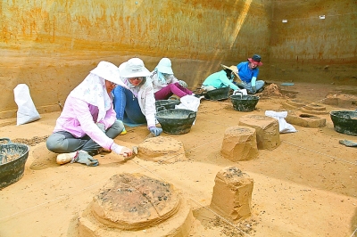 考古人員在發掘出土臨時性建筑遺址。李鵬攝/光明圖片