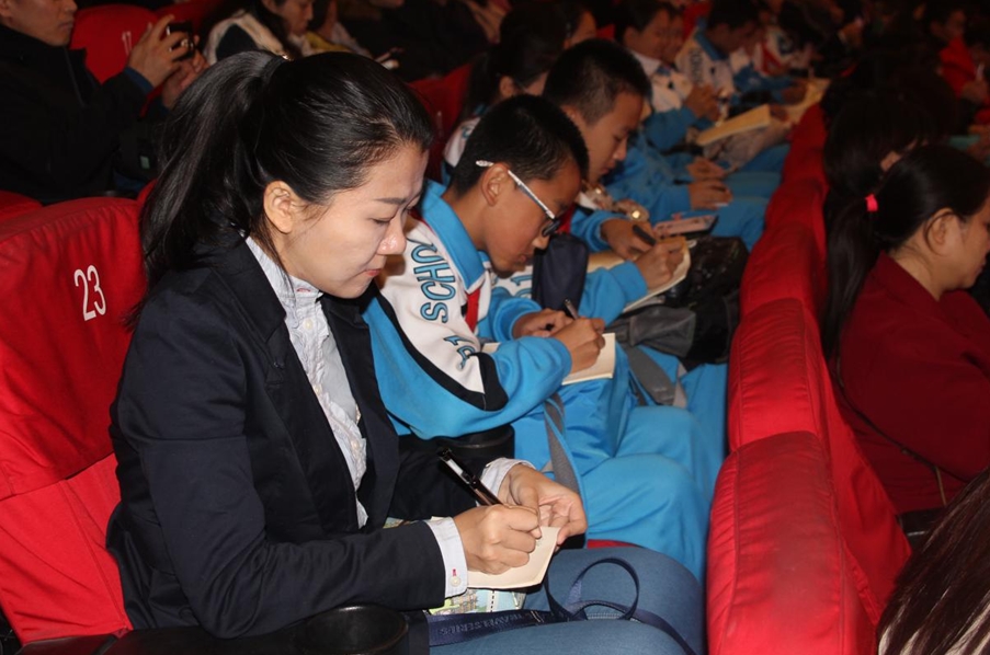 隨后,柳建偉就影視劇創作等問題與現場觀眾熱烈互動。針對一位同學提出的“最欣賞自己哪部作品”的問題,柳建偉回答:“正如球王貝利所說,他最喜歡的是下一個進球。我也最喜歡我下一部作品?!彼嘎?,自己正在創作以“軍改”為題材的電影劇本《時刻準備著》,可能明年推出。另外,還有一部電視連續劇《奔向延安》也在緊張拍攝,預計明年在央視播出。針對觀眾“寫一部電影需要多長時間?”的提問,柳建偉說:“有人快有人慢,對我來說,如果從構思到寫出初稿,可能需要3-4個月時間?!彼€殷切建議中學生“從自己熟悉的生活開始寫作”,這對以后進入社會不管進入哪個行當,都有會莫大的幫助,“在確保能夠上心儀的大學的前提下,完全鼓勵寫作”。