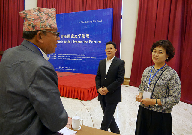 論壇期間,來自孟加拉國、尼泊爾、巴基斯坦、斯里蘭卡的8位作家和中國作家阿來、趙玫、范穩、梁平、裘山山、張燕玲、邱華棟、李洱、于懷瑾等圍繞“傳統與交融中的文化發展”“全球語境下文學創作的個性”等具體話題展開交流。