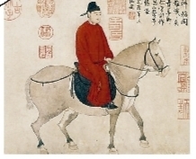 《人騎圖》的左邊有兩則趙孟頫的自題,第一則是說自己從小愛畫馬,北上后有機會見到三卷唐代畫馬高手韓干的真跡,才開始明白韓干在畫中的用意。三年后他再次題跋說畫好畫是難事,但能夠“識畫”更難。自己能把馬畫得如此好,主要是天分使然,這一幅畫自認為不愧唐人。世間能欣賞識別它的都是有眼力的人。
