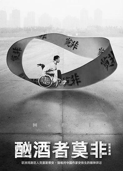 若對比演出本與《設想》的差別,大概能發現主創團隊做了如下改動:將《設想》中酗酒者A的名字變成了“莫非”,而這個名字,來自《宿命》的主人公;莫非身上有作者史鐵生的影子——《設想》中的A是個四肢健全的人,然而《酗酒者莫非》里,莫非和史鐵生一樣坐上了輪椅;而莫非與母親的母子情片段,也都參照了《我與地壇》的內容;舞臺不再是男主角一個人的道場,而是加入更多角色,其中的外國女記者是陸帕自己加進去的。