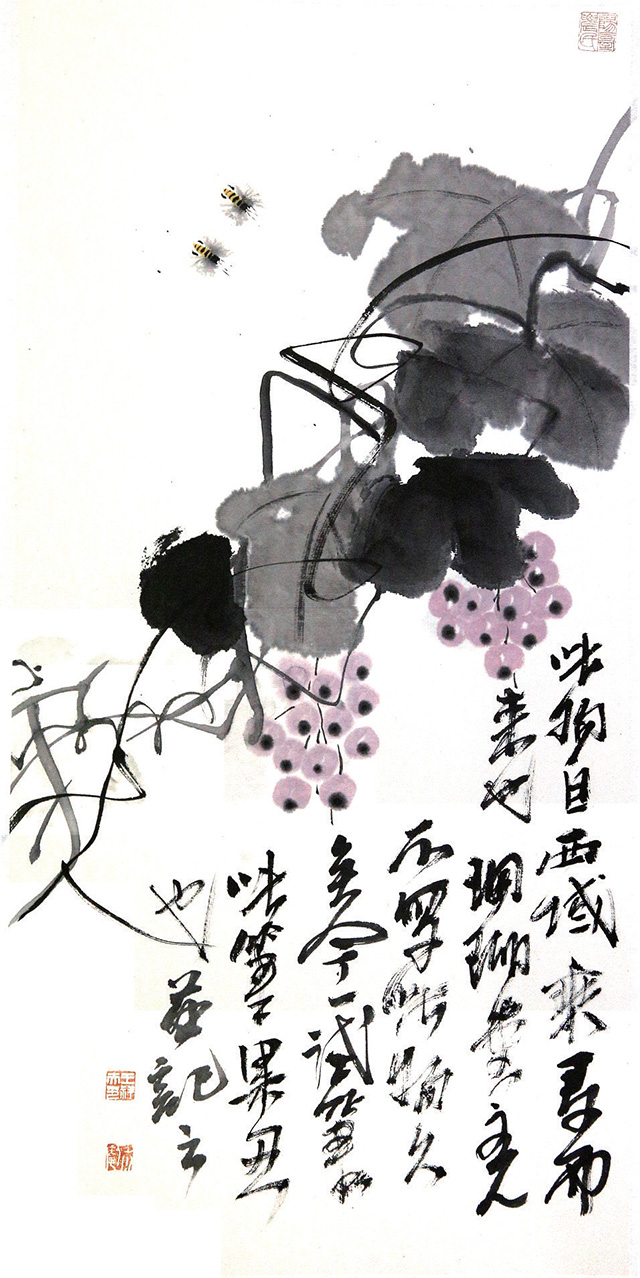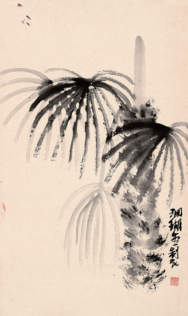 前不久,看一本《古今指畫集》,便忽然想起用手指試它一試,且給毛筆放幾天小假,小時候師傅經常畫指畫,畫之前,必先換黑衣黑褲,這便是講究,然后才慢慢畫起,或是用小指指甲輕輕著一點墨在紙上一點一點輕輕拉,或是用食指和中指并在一起在紙上用力搓擦,或是單用中指蘸一點墨在紙上輕輕點,食指的指甲最長,著紙有力像是公孫大娘劍器行,在紙上一劈一劈。若四指并攏了一齊上陣,大塊的石頭便在紙上即刻崢嶸起來。想想師傅當年畫指畫那雙手真是黑煞難看,指甲縫幾天都洗不干凈,都不忍看他伸手取饅頭。再看看畫冊中潘大師指畫的松石,看看歷代畫家指畫的凌厲用筆,便忍不住研了墨,手巾水盆都準備好,老婆廚房用的圍裙此刻忽然升級,居然直接與文化接軌。鋪好紙,是從右手先黑起,繼之左手,為了畫這指畫還特意留了指甲,但也不是專門為了畫這幾張破宣紙,平時沒事撫弄古琴,右手指甲自然在,再留則是小指,小指指甲畫蟲須,真是要緊的很,其他指甲還很難派用場,而小指指甲留短了還不行,此指便一如筆中的“衣紋”“勾線”。而大拇指卻是中號狼毫。畫指畫,特有一法是以線纏指,粗線細線各有講究,纏一指纏兩指須事先想好,把手指直勒出一道一道楞,還要學會用手抓墨,水盂里一下,硯池里一下,要快而利落,用手指一抓一抓,即刻灑落紙上,淡墨一下濃墨一下,紙上便淋漓起來。潘天壽最喜畫指畫,想必其指甲亦是特別的長,看他指畫之松針,厲厲一如刀劍,今年6月荷花開,專門跑去杭州看了一回荷,心里便想著潘大師的指墨荷花。潘大師的指墨好,好在尺幅大而畫面凈爽,沒一滴墨跡灑落,無論山石蘭草松針鷲鳥,線條遒勁利落得讓人想不到,想必潘大師是一邊畫一邊用什么兜著那只手,不然怎么四尺整張的大畫會那么干凈?畫指墨真是很難做到這一點。所以其《淡彩指墨畫鷲圖》令人心服。再看南宋梁楷,總覺他的畫兒也一律都是手活兒,有指墨的味道。用手指在紙上作畫當然叫做“指畫”。指畫始自唐代張璪,想必此人的手指整日也都是墨跡淋漓,指甲縫里更不必說,且穿不得素衣白袍。畫指畫,雖指縫墨跡一連幾天都洗不干凈,但我還是喜歡那種感覺——就像是身上忽然長出10支筆,居然是軟中硬都有,且分大中小號。以指代筆,有特殊美感,但畫指畫,一張畫實實在在很難只靠手指來完成,即如潘大師,也不免要靠毛筆來收拾一下,或是以線纏指增強其表現力。畫指畫其實味在趣味,不在尺幅大小,最上乘的指畫當純以手指在紙上來去。而以指濡墨,表現力畢竟不如毛筆。時下無論幾流畫家作畫都喜歡畫大畫,動則八尺或丈八,且以能入時人眼為最高目的。有一句話是:“好書畫不入時人眼,入時人眼必無好書畫?!敝府嬕蝗缣圃娭獾脑~,古人把詞叫做“詩之余”,詩言志而詞言情,而指畫可以說是“畫之余”,重在一個“趣”字。趣乃國畫之真魄所在,不如此不可觀。