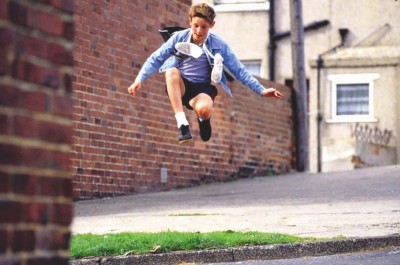 勵志電影也是青春片的一個重要類型。在英國影片 《跳出我天地》 中,男孩比利從小生活在貧困的礦區。每天下井采礦的工作,是父親和哥哥的職業,也是一家人設想中比利的未來。父親希望小兒子能長成一個“硬漢”,因此省吃儉用,為他報了拳擊班,但萬萬沒想到,在拳擊課后開始的芭蕾課,卻真正吸引了比利。他從圖書館偷借了芭蕾的書,每天偷偷上課,回家后躲起來練習。其時,父親和哥哥正在忙于維權罷工,他們喝烈酒、說臟話、向上工的工人砸雞蛋、躲避警察的追捕,一切都是那么的粗糲不堪。而比利卻在“一二三四”周而復始的拍子聲中,抬臂、屈膝、跳躍、旋轉,沉浸于一個全然不同的優雅世界。芭蕾老師發現了比利的才華,打算帶他去倫敦皇家芭蕾學校面試,卻遭到了比利家人的強烈反對,他們認為讓男孩去跳“娘娘腔”的芭蕾簡直是家族的恥辱。比利頹然地走出家門,滿腔怒氣無處發泄,兩腳不自覺地跳動起來。礦區一排排整齊劃一、毫無個性的磚房仿佛成了舞臺,凜冽的風雪為他奏響音樂,比利用身體舞出美妙的線條,為周圍枯燥的環境鍍上一層童話般的色彩。最終,他用自己的舞蹈說服了父親,成功考入倫敦皇家芭蕾學校,繼而成為一名優秀的職業舞者。