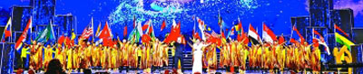 第四屆絲綢之路國際電影節期間的絲綢之路主題演出。鄭帥攝 光明圖片/視覺中國