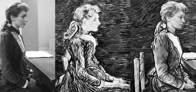 為了保證貼近梵高的客觀視角,多洛塔并不想添加任何非梵高創作的畫,但為了敘述電影故事的完整性,她不得不在繪畫之上添加更多的場景。于是在電影中,彩色的鏡頭是梵高繪畫中的人物和場景,代表著梵高的視野;而類似閃回的黑白鏡頭則不是梵高繪畫中的場景,是創作者為了完善劇情而設計的場景延伸,基于那個年代的黑白攝影,讓影片展現梵高生活中的一些重要片段。