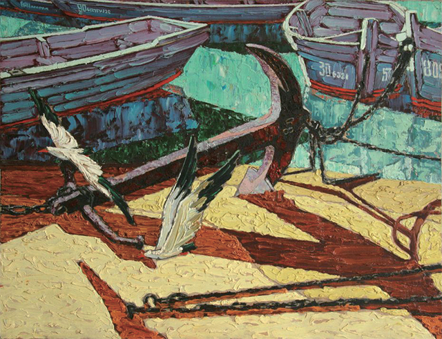 李寶瑞(1937—2016),遼寧省岫巖滿族自治縣人,自幼喜愛繪畫,1965年考入中央工藝美術學院,1973年到黑龍江美協任專職畫家。他的繪畫作品題材多樣,面貌多變,極具藝術想象力,畫風獨特,卓而不群。展覽展出國畫、油畫、書法、水彩、素描、手稿等多種類型作品共60余幅,以及黃永玉、華君武、潘天壽等藝術家與李寶瑞的信札等,全面展示李寶瑞一生的創作成果和歷程。圖為李寶瑞1976年作品《江沿》。 (欣 聞)