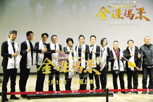 《金珠瑪米》首映禮,導演楊蕊(左五)與主創人員出席。劇組供圖