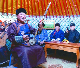 “群眾需要藝術,藝術需要群眾……”蘇尼特右旗烏蘭牧騎隊員鋼寶力道拉著四胡,給牧民表演他創作的好來寶《乘愛啟程》。58歲的鋼寶力道參加烏蘭牧騎已有41年,在蘇尼特右旗是家喻戶曉的說唱演員。他創作表演的好來寶、烏力格爾常常在電視、廣播中播出,被廣為傳唱。對于他來說,創作的秘訣不在于技術的高超,而在于“俯下身”的耕耘。