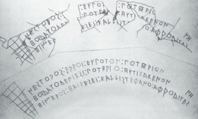 第二、三行詩用的是典型的荷馬式六韻步格,這應該是“現存的最早的文字形式的希臘詩”?!啊逗神R史詩》本質上屬于‘hexameters’,這個希臘詞的意思是‘六步’,因為在每行詩里都有六個韻步,而這行詩里的每個字(詞)都要套進固定的韻步里去。這種格律本質上是對語言有嚴格要求的?!边@只杯子杯口直徑約7英寸,灰褐色,上有黑色飾紋,兩側各有一個短柄。杯子現藏于意大利伊斯基亞島的阿爾布斯托莊園(Vil?laArbusto)博物館?!白鳛橹趁裾叩脑缙谶z存,該陶樽同時也表明荷馬史詩在公元前八世紀的廣泛流傳,尤其是希臘字母對意大利語族書體發展直接或間接的影響?!辈贿^,這是一只陶制的飲酒杯,與荷馬描寫的杯子大相徑庭??梢?,皮埃爾·維達爾-納杰在《荷馬的世界》中的說法并不確切。這并非一只“長柄高腳金杯,兩個提耳裝飾著兩只黃金鴿子”。皮埃爾顯然是將邁錫尼發掘的杯子與伊斯基亞島發掘的杯子混為一談、合二為一了。皮埃爾的著作出版于2002年,2007年經王瑩翻譯由中國人民大學出版社出版。據說皮埃爾研究希臘文化長達半個世紀,作為一個法國學者,作者去希臘、意大利實地考察一番應該是輕而易舉的事情,著作中出現的這種不實之詞應該是完全可以杜絕的。