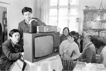 1984年北京市無線電修理中心工人在某教授家修理黑白電視機 安佑忠 攝