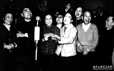那時,每年的元旦和春節除夕,周總理經常是在人藝度過的。大家吃著冰糖葫蘆、花生米,喝上一點點茅臺酒,有時還跳舞,唱歌,唱京戲,說笑話,歡歌笑語,親如家人。