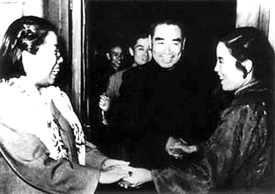 1957年9月,周總理、鄧大姐看完《駱駝祥子》演出后,到后臺向舒繡文表示祝賀。