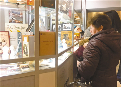 莫斯科市民在普希金故居博物館中選購紀念品。 本報記者 吳 焰攝