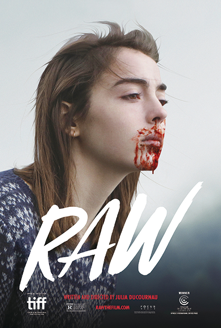 法國電影《生吃》同樣是披著恐怖片的皮囊,講述成長的痛楚。與《當怪物來敲門》不同的是,《生吃》沒有超現實橋段,少女生吃血肉的情節雖然夸張,也完全可以是真實的。此片的影像和它的名字一樣生猛:一個出身于素食家庭的少女,在去大學讀獸醫專業后,逐漸按捺不住對新鮮血肉的口腹之欲,更令人不安的是,同校就讀的姐姐早已遵循內心的渴望成了食人者,還想教會妹妹如何獵食。
