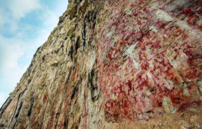 我看過廣西的花山巖畫,數十處有巖畫的巖陰延續數十里。這些巖畫中可以辨別出幾十種不同的顏色。飲食、采集、捕魚、狩獵、舞蹈、歌唱、生殖、死亡、喪葬……夕陽西下的時候,山的斷層變成了單純的色塊,被斜陽熏陶得光熠四射。有無數根古樸而美麗的線隱藏在巖石上。那些線深深刻出遠古時代的生活。魚和鳥以及許多的人體器官構成了這種生活。簡潔、單純、童貞、古拙、神秘、剛烈、含蓄、抒情、抽象、金石之韻……旋轉的東方線條神秘而游離,穿越太空,遏制著有序的日月星辰,抽象的符號火炬一般在空中搖曳,勇敢的精靈銜著希望之矢撲向太陽,黑色的鳥主宰著天空,如命運之神游刃于黑紅相間的大色塊之間?!疤斓嘏c我并生,萬物與我為一”,古人繪出了感人至深的圖畫故事。