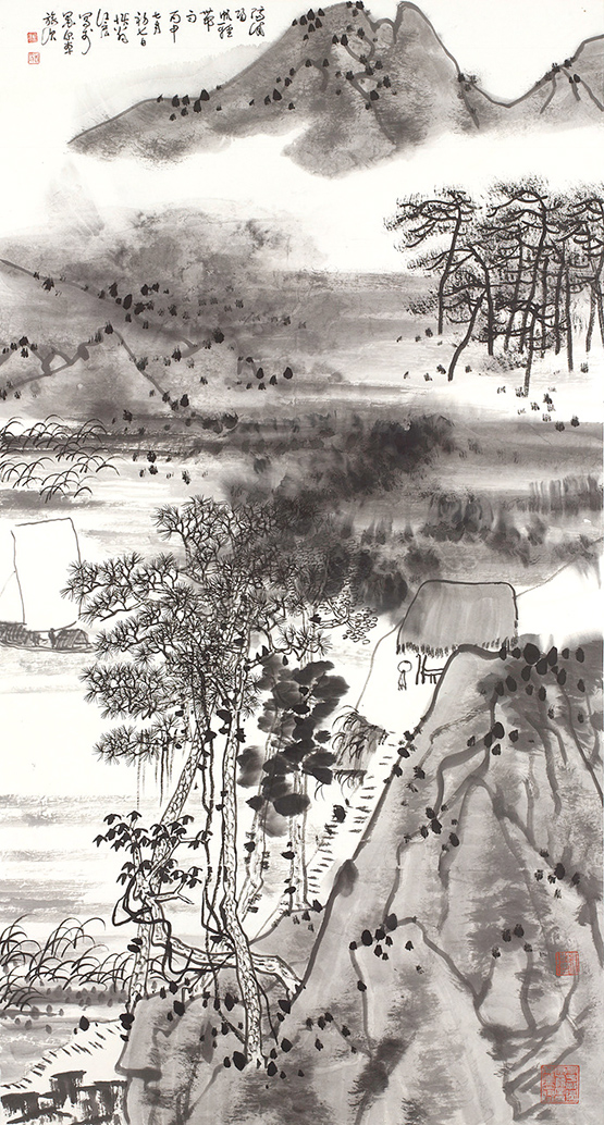 但他依然有著海派的優越和優雅,從容典雅,長松流瀑、遠山近水、奇峰行云,都是以名士之風敘述描繪,娓娓道來,曲徑通幽。他拓寬了海派的疆域,豐富了海派的內涵,把他江宏的性情在紙上渲染,用他精到的筆墨,寫山水大風景、作人生大文章,把他藝術的審美和生命的體驗表現得淋漓酣暢,爽了自己,也打動了別人。