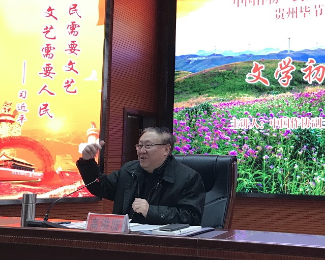 1月27日至28日,中國作協副主席高洪波一行3人組成的中國作協“到人民中去”紅色文學輕騎兵小分隊走進畢節,開展文學公益講座、創作座談會和相關主題實踐活動?;顒佑少F州省作協黨組書記、副主席張緒晃主持。畢節市文聯主席劉群峰、畢節市作協主席楊春明等出席有關活動,畢節市、赫章縣、畢節國稅文聯、作協及周邊區縣文學愛好者百余人參加活動。