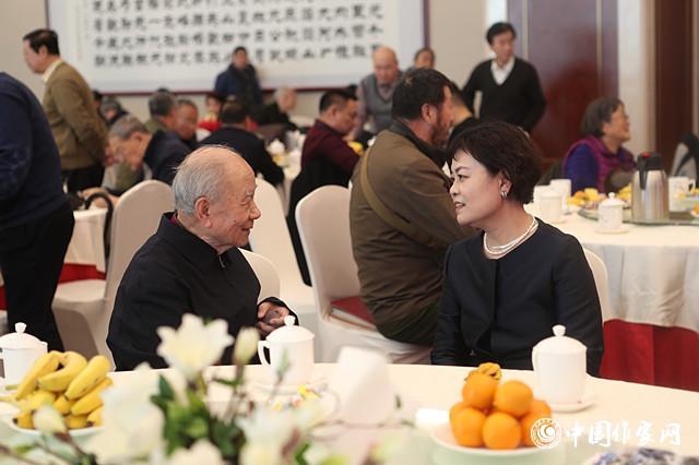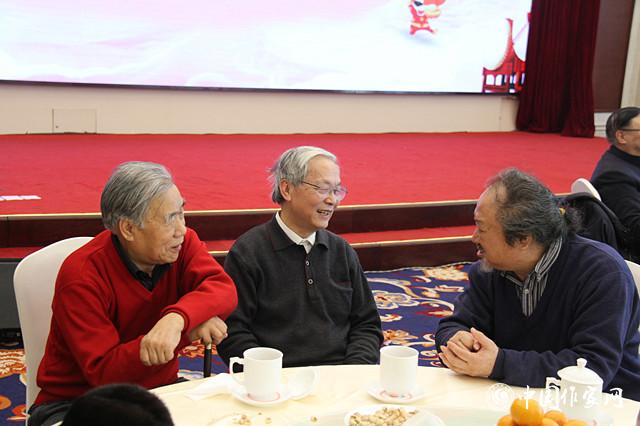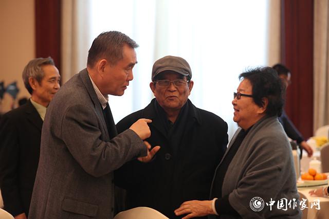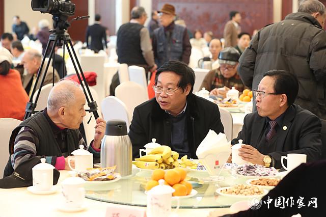 在喜慶歡快的樂曲聲中,鐵凝和錢小芊等中國作協黨組書記處同志來到老作家老同志身邊,同大家親切握手,問候交談,向大家致以誠摯的新春祝福。老友新朋聚在一起總有聊不完的話題,說不盡的故事,敘不完的情誼。大家互贈新書,拍照合影,回顧過去一年中國文學繁榮發展所取得的成就,為新一年文學事業和作協工作提建議談希望。不忘初心,砥礪前行,這是廣大作家和文學工作者的心聲,也是中國文學由“高原”向“高峰”邁進的強大動力。