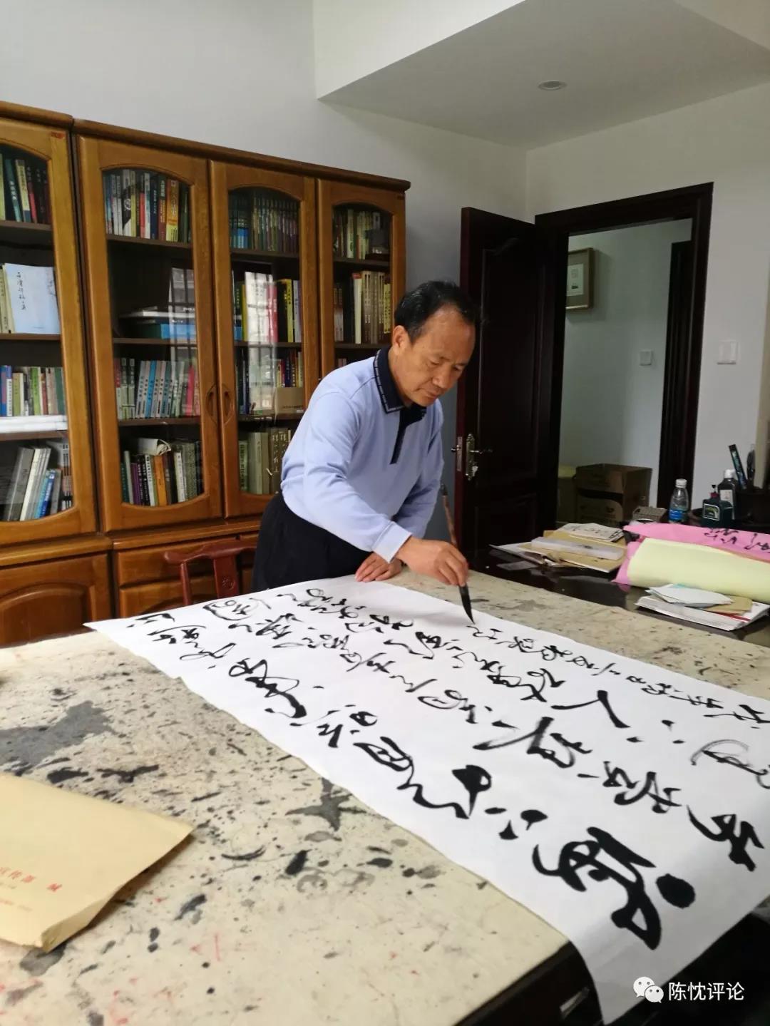 中國人民大學哲學博士的學習經歷,給了周文彰對書法認識的辨證的角度和理解,并將其多元而客觀的運用在工作和實踐中,有效而準確的在旅途上、工作中、交流里發揮著書法的作用。從他的“旅途書法”集子里,可觀其積累的點點滴滴。之所以說他能夠辨證地看待書法,是因為他將書法當作修為和規矩內心及輔助工作的幫手,“視書法為藝術,可以。但自己寫出來的作品如何?需專家、觀者評鑒。成為書法家,愿望是好的!但是,需要有日積月累的耐心”。這是周文彰的書法心態和對待贊譽的態度,樸素而平和的表達!無論是在原來的省部級領導崗位上,還是在博士生導師的學術地位和中央國家機關書法家協會副主席的職務上,周文彰都是虛心好學的態度。2018年春節前夕,周文彰的“除夕書法”作品展在??谂e行,展出的是他每一年在除夕這一天創作的書法。老領導、老同事、老朋友如約而至,更有許多島外書法愛好者前去參觀。周文彰從2003年始,每年除夕堅持寫幾張巨幅書法作品,雷打不動。展覽的定位是學習、交流與匯報,主旨是冷靜而準確、且有情有意的!