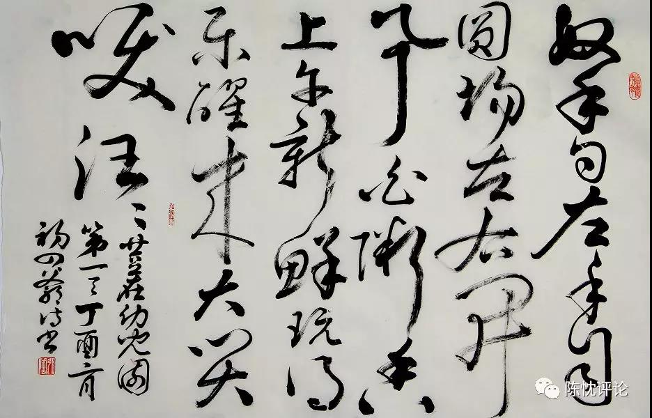 書法之美是中華民族獨有的創造,濃淡干濕和筆斷意連中是隱含有哲學思想的。周文彰的書法之道,所以“通”,是正如張申府先生著《所思》序中所釋:“通”,是我認為作哲學的最后目的。分析,多元,客觀,切實,都是“通”的門路,都是“通”的應用。周文彰的書法正是在悟道中邁進了“通”之門后,等待著圓融的涅磐,這書法之道的根本性飛躍,也許十年,也許更長……