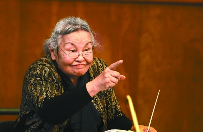 隨著正式演出時間的迫近,排練也進入了最后階段。昨天下午,北京交響樂團排練廳長廊中樂聲不絕,即便隔著一扇厚重的大門,屋內錚錚作響的琵琶聲依然清晰可聞。工作人員告訴記者,此時,章紅艷正在與北京交響樂團合練琵琶協奏曲《云想·花想》。趁著樂曲中一處小小的暫停,記者悄悄推開了排練廳的大門。迎面而來的,正是端坐在指揮臺上的鄭小瑛的背影,雖然今年已經89歲高齡,鄭小瑛的精神狀態卻格外的好。與樂手們商量樂譜的細節時,鄭小瑛的思路非常清晰,嗓音也十分洪亮。樂曲進行時,她指揮的動作同樣干凈利索,鄭小瑛的情緒深深地感染著樂團的每個人,在她的帶領下,整首《云想·花想》被演繹得錯落有致、高潮迭起,一曲終了時,樂手們都情不自禁地鼓掌叫好。