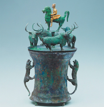 四牛鎏金騎士貯貝器