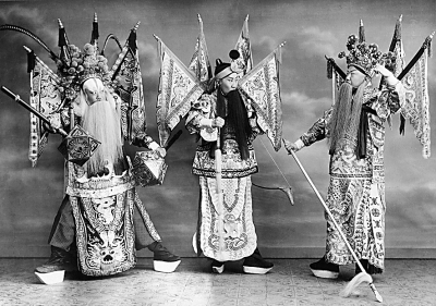《湘江會》 翁偶虹(左一)飾演紀顏選自《鉤奇探古話臉譜》
