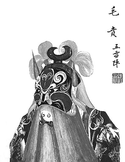 臉譜的創作和設計,是許多臉譜研究者和繪制者最愿實踐的一步,也是最容易誤入歧途的一步?,F在許多新編劇目,或者不設臉譜、應付了事,或者因循舊歷、落入窠臼。至于一些案頭臉譜畫家,更是不惜以遭受“造魔”之誚為代價,無中生有,胡編亂造,生生把本已滿目瘡痍的臉譜藝術破壞得無以復加。面對這種現象,翁老生前時常把筆扼腕,惋惜不已。他在《影印〈臉譜大全〉前言》中這樣慨嘆:“晚近戲曲式微,京、昆、秦三個劇種的傳統老戲,凋零殊甚,劇既失傳,臉譜自隨劇而泯滅。加以一般演員,狃于頹風之漸,勾畫臉譜,潦草從事,粉墨敷衍,譜式乖謬者,常見于紅氍毹上,不倫不類者有之,以訛傳訛者有之,失其神態者有之,李代桃僵者有之,閉門造車者有之,觀者惘然,論者慨然?!蔽汤系膿鷳n并不是杞人憂天。目前,臉譜藝術的確每況愈下,這種“頹風”也確實甚為盛行,亟待扭轉。翁老能夠清楚地認識到臉譜的尷尬處境,正是基于強烈的藝術責任感,這與那些游戲筆墨、不負責任的所謂學者和畫家妍媸互見,形成了鮮明的對照。而這種對藝術負責的態度一旦融入臉譜創作設計的過程當中,便更能促使臉譜與角色實際相貼切、扮相與舞臺表演相契合。這也正是翁老的臉譜作品格外出類拔萃、與眾不同的原因所在。