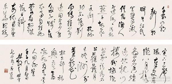 也許傅雷沒有想到,林散之欣然應允。他遵照傅雷的要求,畫了八幅不同風格的山水畫。這八幅山水畫,林散之用心畫著,每一幅有每一幅的構思,每一筆有每一筆的講究,為此,林散之曾說:“予為怒庵畫冊頁八開,由初春而深冬,水墨、著色者相間,濃淡有序,動筆之前便有大體上構思,下筆時細節有變動,但大綱未變??傮w構思疏忽,每幅可看,放在一起便不協調。八開中有‘重頭戲’,《嘉陵江》取斜勢,小中見大;一頁得郭熙遺意,云頭皴似牛毛,筆筆相顧;一頁近子久,多次積墨,較為沉厚?!?/p>
