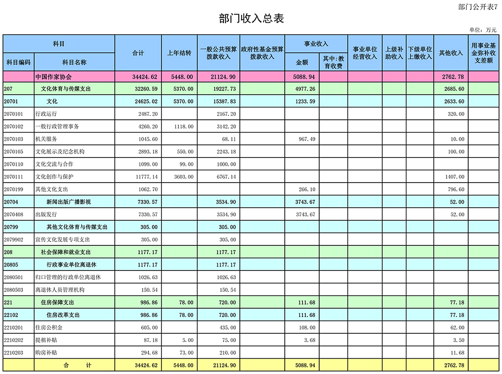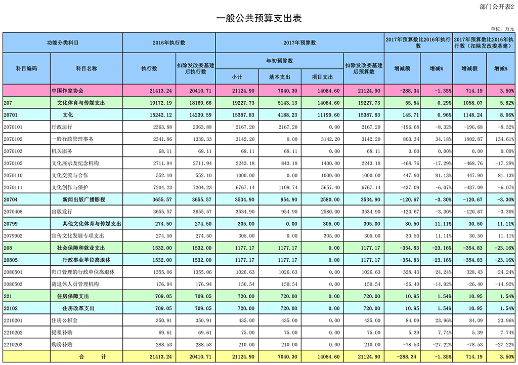 八、文化體育與傳媒(類)文化(款)一般行政管理事務(項):指中國作協本級組織作家深入生活等文學活動所需的項目支出。