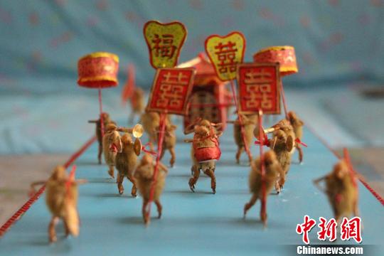 “半寸猢猻獻京都,惟妙惟肖繪習俗”,今年52歲的楊鳳巖每天工作之余就坐桌前拿出剪刀、鑷子等工具創作形態各異的毛猴。4月25日,楊鳳巖在接受中新網記者采訪時說,他從奶奶和父親手上傳承這門工藝,已研究制作毛猴30余年。