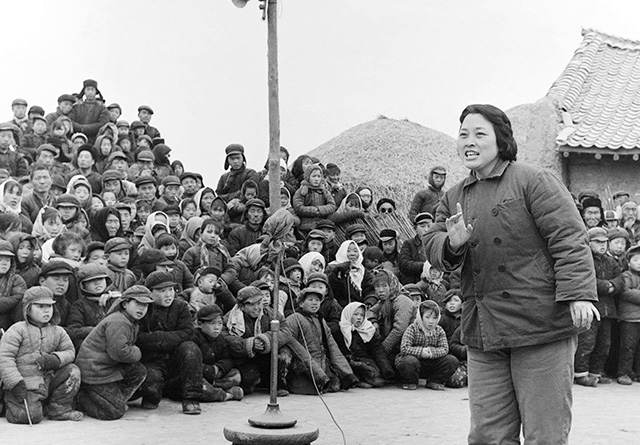 歌唱家王昆作為第二批中央農村文化工作隊陜西隊隊員為社員演唱歌劇《白毛女》選曲。 李一方 攝