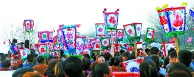 南峪鎮臺頭村的邳神廟會,會期六天。祭祀的邳神,本名邳彤,系東漢光武帝劉秀云臺二十八將之一,在當地民間傳說中被稱為“藥王”。廟會期間,鄰近的很多鄉鎮,甚至山西省娘子關、舊關、井溝等地的村民都趕來參會。廟會主要活動有請神、跳神、誦經、踩街、戲劇、馬戲、歌舞、拉花、雜技、社火、旱船、武術、魔術、高蹺等。正日的踩街活動,尤為壯觀。人們用三層木轎抬著邳神像巡游,身著彩服的數十支、逾兩千人的文藝隊邊走邊舞,炮聲、歌聲、吹奏聲震天動地,以此來祈求消災祛病、吉祥平安、風調雨順、人壽年豐。在陜西省鳳翔縣的槐原,農歷正月二十五要舉行一年一度的排燈會?;痹膫€村莊的百姓,家家戶戶高舉著自制的排燈,聚集到槐嶺村的女登祠前舉行祭祀活動。民間傳說,女登是炎帝之母,槐原是女登故里,槐原排燈會已有4000年的悠久歷史。