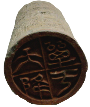 1955年,內蒙古自治區包頭市召灣漢墓出土“天降單于”瓦當,充滿濃郁的邊疆風格。這件西漢時期的瓦當,直徑17.1厘米,圓形,后有筒,筒中部有瓦釘孔;正面寬沿,被十字格線分成四區,每區內一陽文篆字,即“單于天降”四個字。