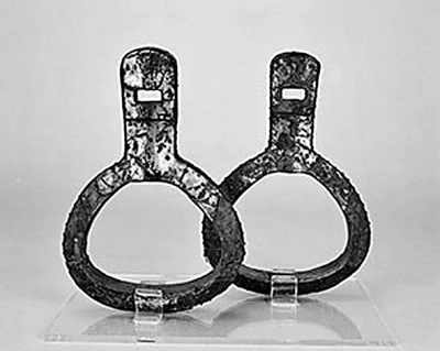 銅鎏金木芯馬鐙(遼寧省博物館藏)。