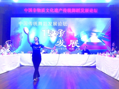中國非物質文化遺產傳統舞蹈發展論壇現場,演員展示舞蹈動作。張 婷 攝