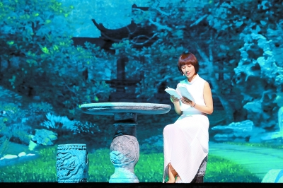 《牡丹亭》昆曲曲牌里的唱詞從小就流入了袁泉心里,這亦是一種思念。她說:“我非常能夠體會得到它其中的每一個字所表達的意境,在字和字組成詞句之后,會有戲曲的那種韻律在里面,這次在《朗讀者》中也算是一個嘗試,就是把本來有旋律的一段戲曲作品的唱詞,用朗讀的形式呈現出來?!睘榱藢⒊~從容轉換成念誦,節目組配合袁泉在布景和舞美視效上做了充分準備。待她第一次走上舞臺現場彩排時,紗幕、大屏和燈光已經調試過很多遍,只等畫中人。袁泉說:“當我看到舞臺變成了有杉木、有亭臺樓閣的一個庭院時,真的感覺非常興奮,音樂響起,置身于如此有意境的景象之中,我的朗誦便自然而然地帶出那種韻味,即便當我錄制完成后也還是感覺到意猶未盡?!?/p>