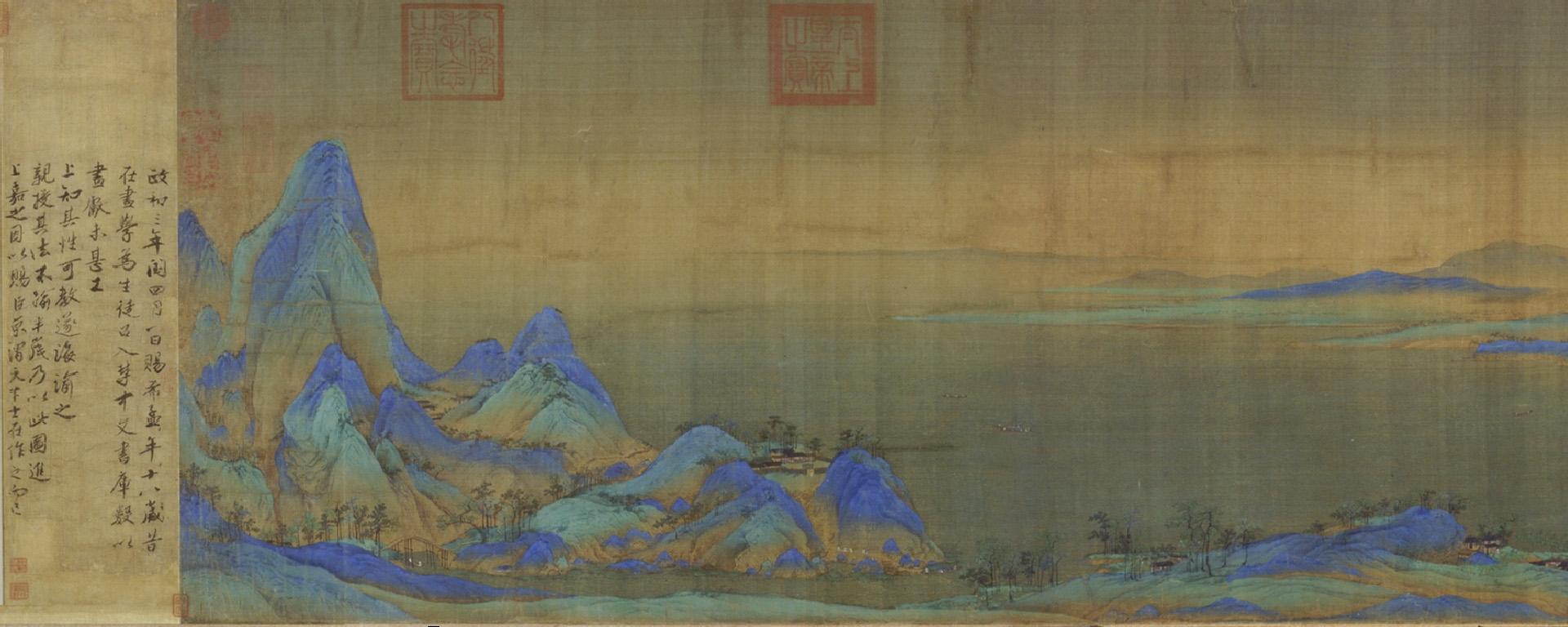 余杰:有關論據有不少。我所據的,是清初收藏家、康熙朝宰輔梁清標購得此畫后,在請人重裱時,在《千里江山圖》外包首題簽書寫的“王希孟千里江山圖”。