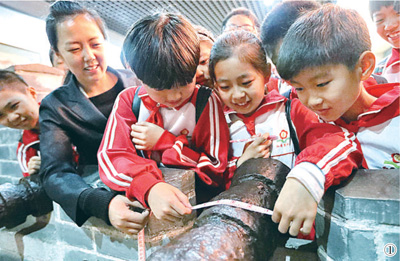 17日,河北省秦皇島市和安里小學組織學生走進當地的山海關長城博物館,孩子們在聆聽講解中,近距離學習長城的相關知識,并體驗文物保護測量等趣味活動,感受中華歷史文化。 圖為孩子們在工作人員的指導下體驗文物保護測量。 史自強 曹建雄攝影報道
