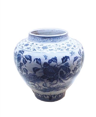 明正統青花孔雀牡丹圖罐