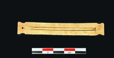 石峁遺址出土骨制口弦琴 陜西省考古研究院供圖