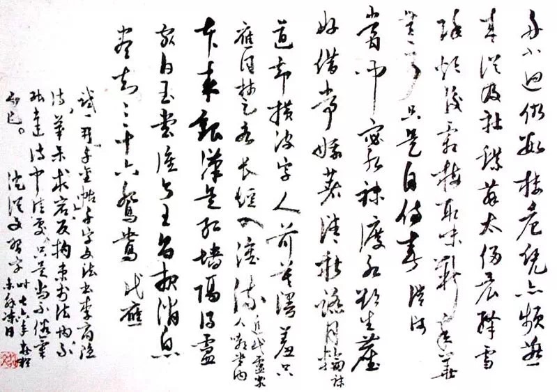 我是從老詩人曹辛之那里了解沈從文書法的。曹辛之是沈從文的好友,七十年代初,他們兩家住得不遠,常常來往。沈從文新寫了字總喜歡會拿到曹辛之家里給他看,也常把自己寫得滿意的字送給曹辛之。沈從文去世后,曹辛之發現自己竟有了數十張沈從文的字。