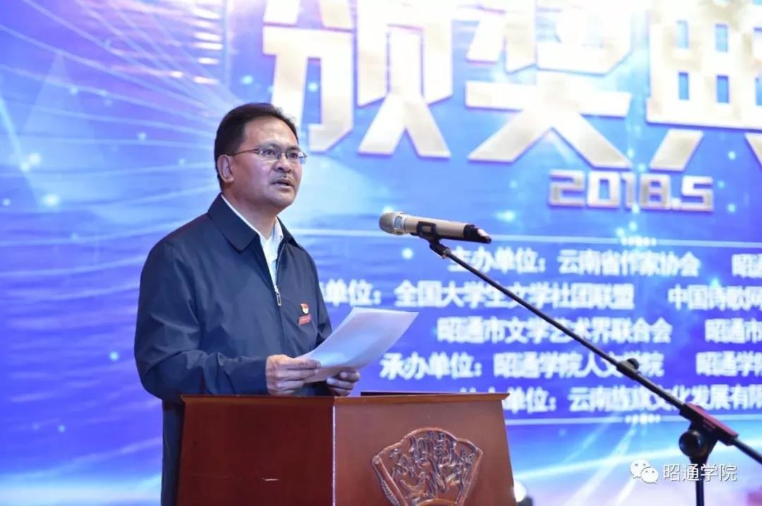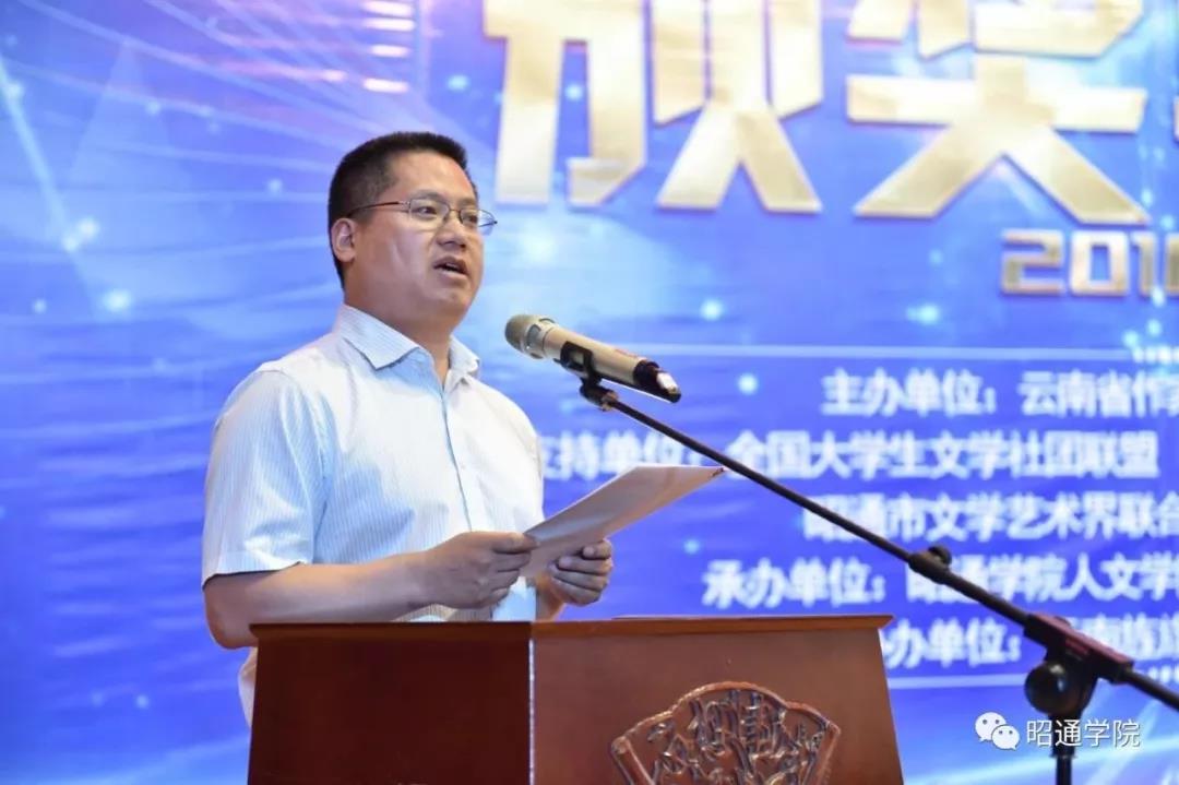 中共昭通市委常委、組織部部長陳真永,昭通市人民政府副秘書長鄒邦才、昭通市文化體育局局長施華滟、昭通市文聯主席呂亞平、昭陽區區委常委、宣傳部部長沈洋,昭通市文聯副主席艾自由,著名評論家、暨南大學文學院二級教授、國務院政府特殊津貼專家、博士生導師宋劍華博士,著名作家、《花城》雜志名譽主編田瑛,著名散文家、北京作家協會駐會專業作家周曉楓,著名詩人、《十月》詩歌編輯谷禾,青年評論家、中國作家出版集團團委書記、全國大學生文學社團聯盟秘書長顧超等省外專家,著名作家、云南省作家協會副主席胡性能,著名詩人、云南省作家協會副主席雷平陽,著名作家、大理大學文學院院長、云南省作家協會副主席納張元,著名作家、云南民族大學二級教授、云南文藝評論家協會副主席李騫等省內專家學者,昭通作家和學校黨政領導出席此次頒獎典禮。
