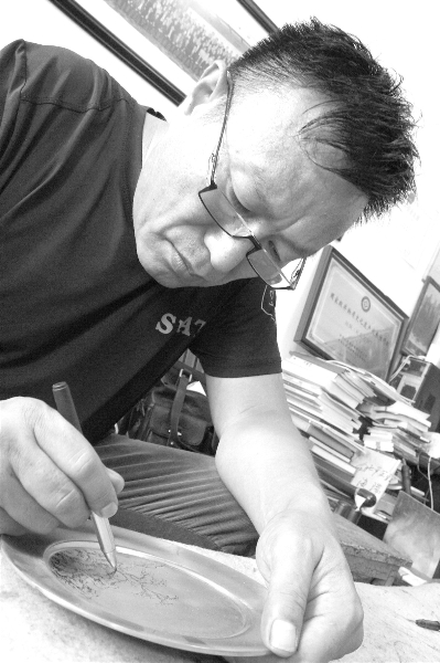近日,得知自己成為第五批國家級非遺代表性項目“刻銅(杜氏刻銅)”的代表性傳承人時,杜平正在山西平遙授課。當弟子們向他祝賀,他說:“這不僅是國家對我個人刻銅技藝水平的肯定,更是對我們傳承這項民族藝術的肯定??蹄~技藝已有千百年歷史,是老祖宗留下的瑰寶,我們師徒要共同努力,把這門技藝發揚光大?!?/p>