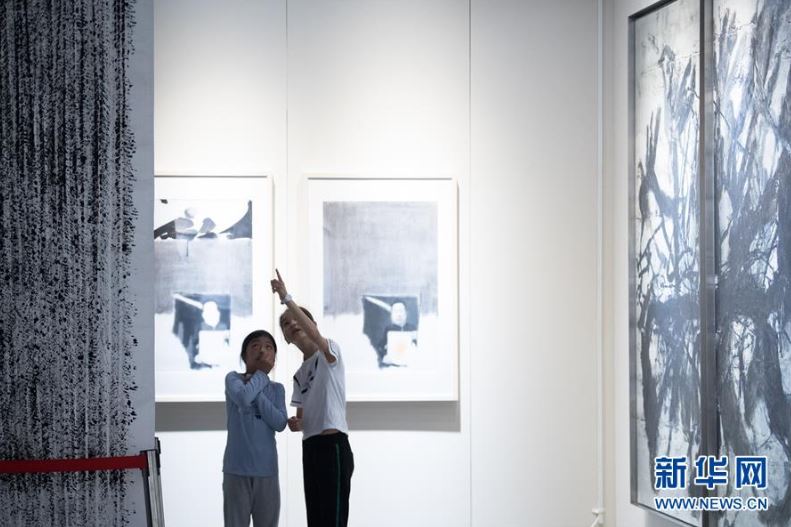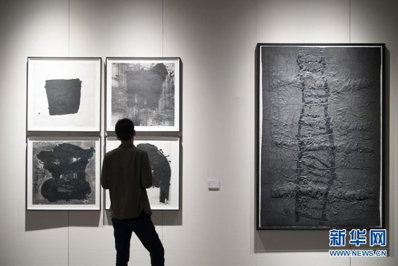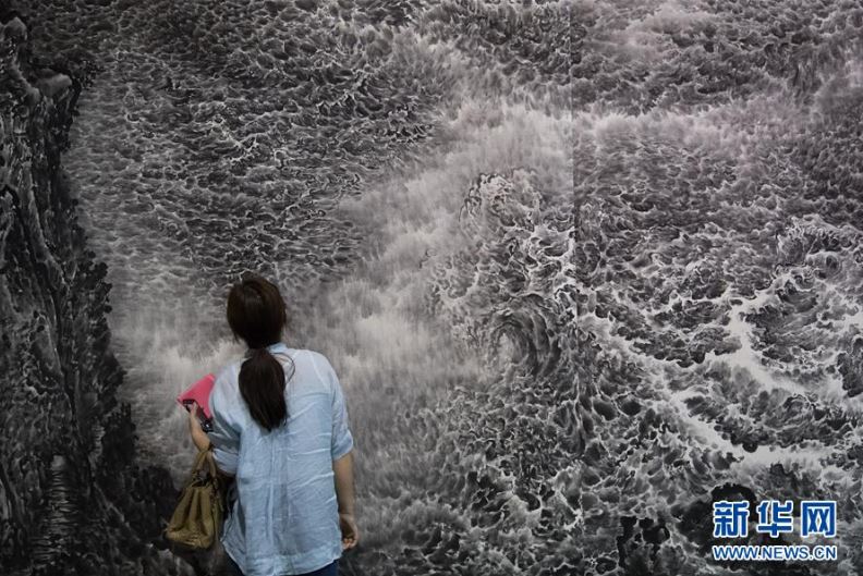 5月24日,觀眾觀看參展的水墨作品。當日,以“水墨無極”為主題的首屆藝術西湖·國際水墨博覽會在杭州和平國際會展中心舉行,展出百余名藝術家的水墨作品。