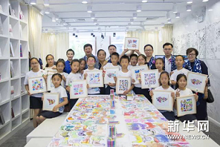 同日,由“韓美林藝術基金會”發起的“少兒美術啟蒙——韓美林藝術社會大課堂”活動在“韓美林藝術衍生品體驗館”舉行。韓美林周建萍夫婦與來自北京史家小學的師生一起,參與“我愛小動物”色粉繪畫活動和“五光十色”韓美林創作手稿集體再創作活動。