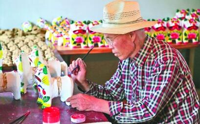 近年來,山東青島萊西市挖掘村莊歷史文化資源,以鄉村振興為核心,積極融入“樂在萊西”旅游品牌培育。產芝村泥塑柳編館內的泥老虎是用木??闹?,并有一個“哨”。推拉擠壓時,哨音就會在虎頭的空腔內產生共鳴,虎嘴會發出“咕咕”的叫聲。左圖為手工藝人在制作泥老虎。